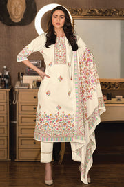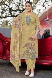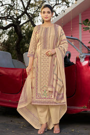 Beige Color Cotton Digital Printed Embroidery Work Salwar Kameez