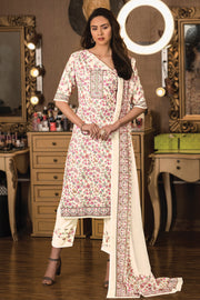 Cotton Digital Print Fancy Cream Suit