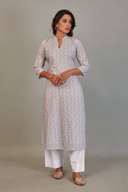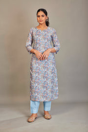 Pure Linen Cotton Digital Ptd Kurti Rani Cream Grey