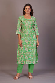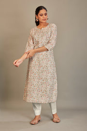 Sukura Digital Printed Fabric Cream Green Flower Kurti
