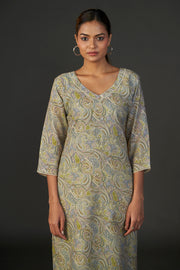 Pure Linen Cotton Digital Ptd Kurti Mehandi Paisley