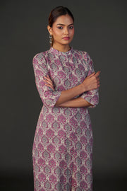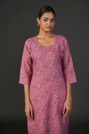 Pure Linen Cotton Digital Ptd Kurti Vintage Pink Cream