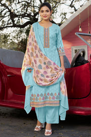 Sea Green Cotton Digital Printed Embroidery Work Salwar Suit