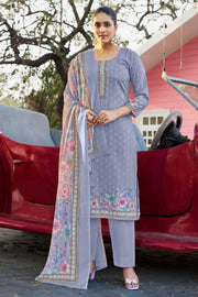 Purple Cotton Butti Digital Printed Work Straight Cut Salwar Kameez