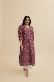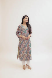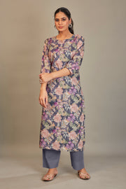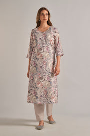 Sunaina Digital Printed Fabric Gray Pink & Mauve Flower Kurti