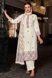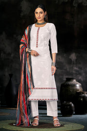 White Color Cotton Digital Printed Embroidery Work Straight Cut Suit