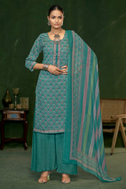 Teal Color Jaam Satin Digital Print Casual Palazzo Dress