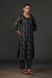 Pure Linen Cotton Digital Ptd Kurti Black Light