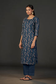Pure Linen Cotton Digital Ptd Kurti Blue Flower Ptd