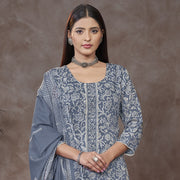 Pure Jaam satin Fancy Embroidery Work Straight Cut suit In Blue Color