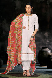 Pure Italian Lawn Lucknowi Embroidery Work Straight Cut White Color Salwar Suit