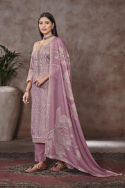 Lavender Color Jaam Satin Digital Prints Yock Daman Embroidery Work Suit
