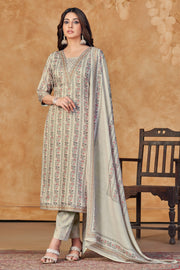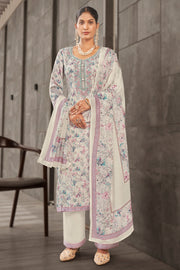 Off White Cotton Digital Printed Embroidery Work salwar suit