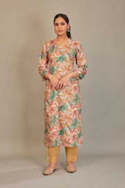 Pure Linen Cotton Digital Ptd Kurti Light Brown Cream