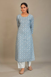Pure Linen Cotton Digital Ptd Kurti Light Blue