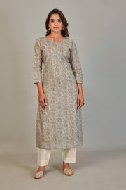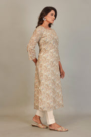 Jaam Satin Digital Printed Fabric Cream Kurti