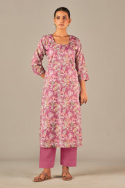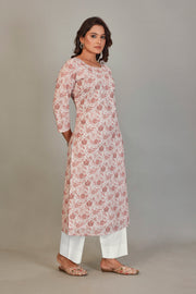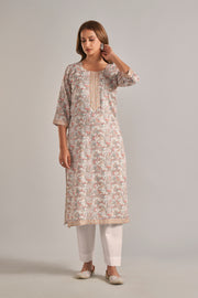 Sukura Digital Printed Fabric Off White Pink Flower Kurti