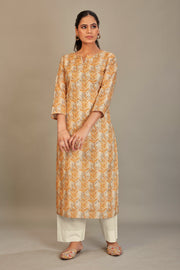 Pure Italian Digital Printed Fabric Mustard Kurti