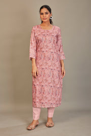 Jaam Satin Digital Printed Fabric Light Pink Kurti