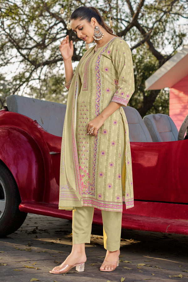 Elevate your style with this beautifully crafted three-piece ensemble, designed to bring elegance and comfort together. The top features intricate Cotton Butti Digital Print, offering a traditional yet contemporary charm with its vibrant, detailed design.