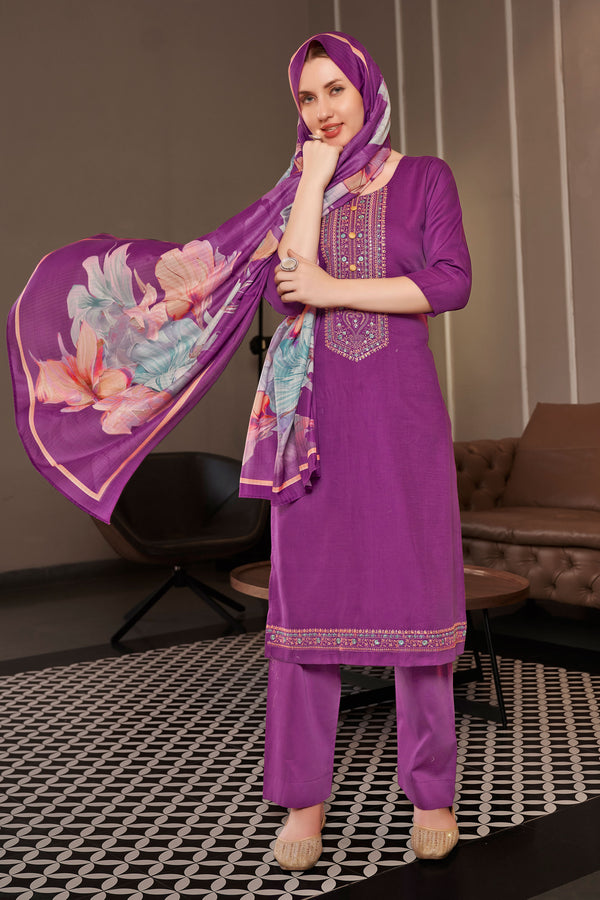 Purple Pure Jaam satin Fancy Embroidery Salwar Kameez